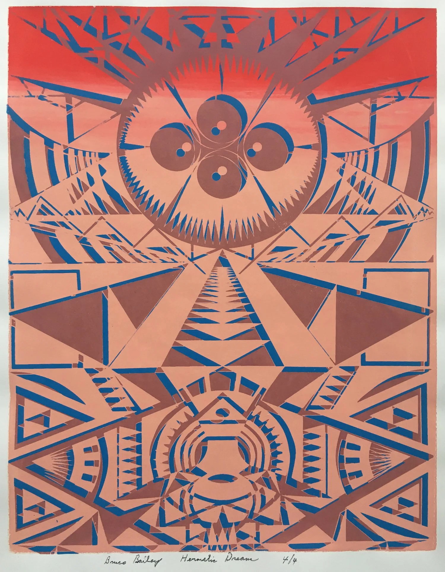 The imagery suggests multiple sources well known to the artist, such as the Wizard of Oz, photographs of nuclear explosions, Navajo sand paintings, 1960s psychedelia and structural steel fabrication (the artist worked in a shipyard in 1974).